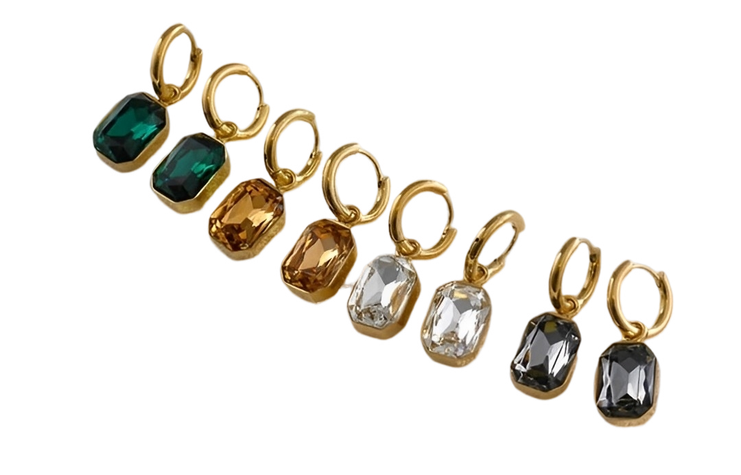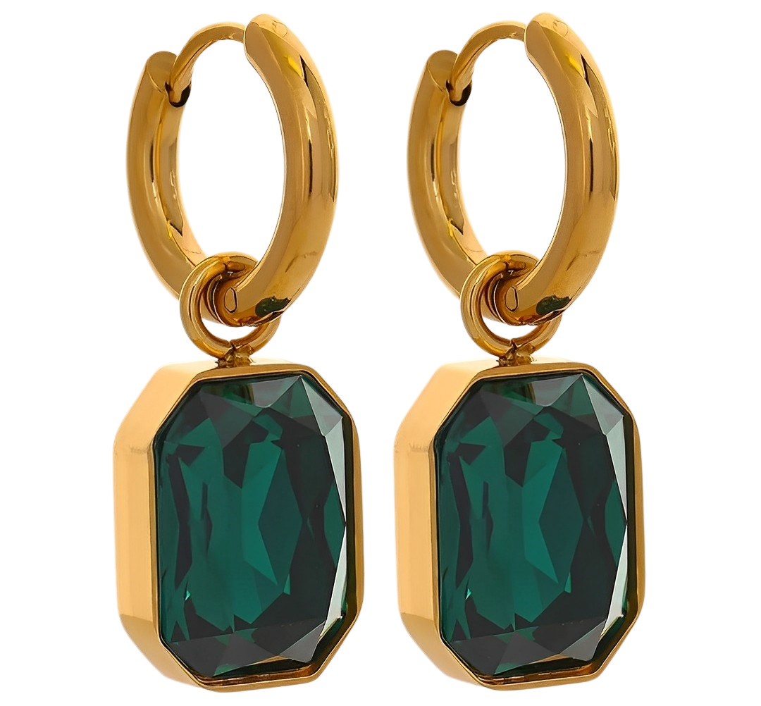 Arete acero inoxidable con piedra en forma de gema.