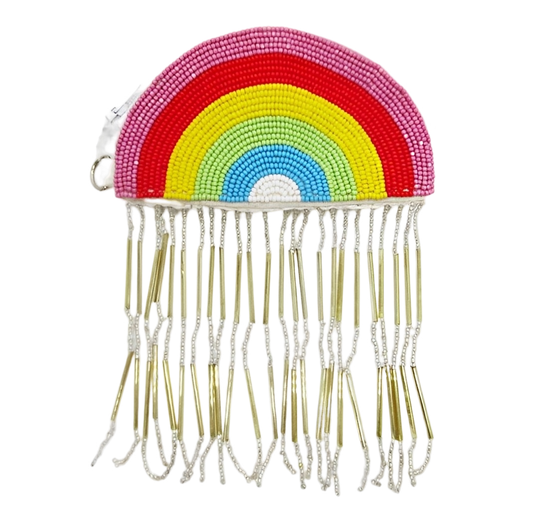 Bolsa Hippie Chic en forma de arcoíris con tonos dorados.